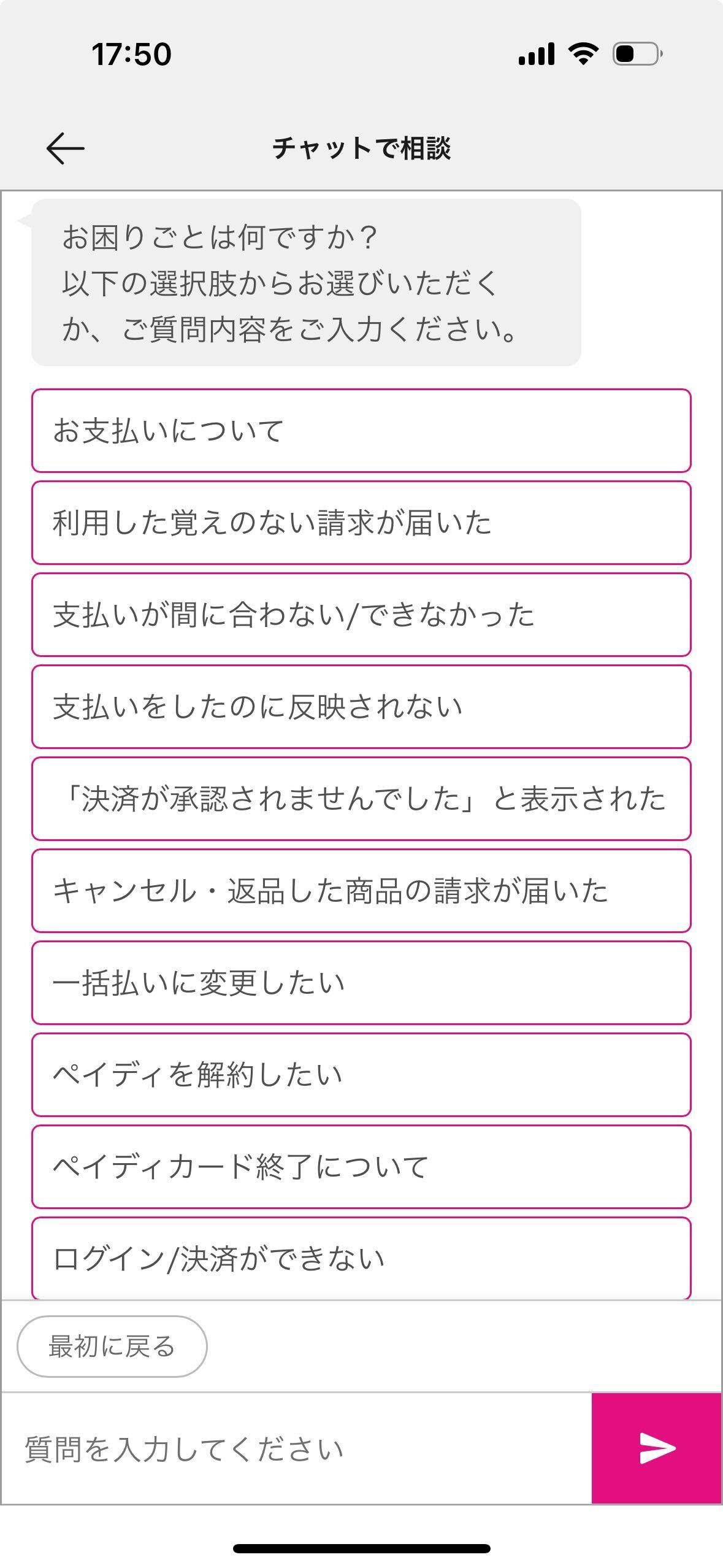 - ペイディをご利用中のお客様は、メールにてお問い合わせいただくか、「ペイディのアカウントをお持ちの方」からお電話でお問い合わせいただくとスムーズです。